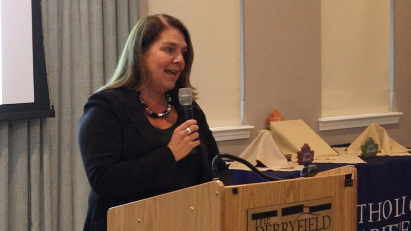 The evening also featured remarks from Kerry Alys Robinson, president and CEO of Catholic Charities USA. Robinson shared her enthusiasm for the work being done across the Catholic Charities network and introduced the People of Hope mobile museum, a two-year traveling exhibit featuring powerful client stories from agencies nationwide, including one from New Hampshire. She emphasized how these stories highlight the deeply personal nature of Catholic Charities’ mission and the hope it brings to individuals and families.